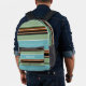 Custom Teal Blue Sage Green Brown Ivory Stripes Printed Backpack