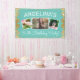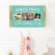 Personalized teal and gold birthday party banner, featuring a vintage ornate gold border & confetti, 3 photos for you to change to your own, and the name of the person!