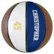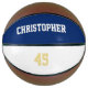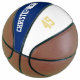 Create your own custom, personalized, white and faux gold elegant stylish typography / script / text / name on white and dark navy blue background, regulation size, hand stitched basketball. Simply enter the player / team / club / school / college / event / tournament name, and player jersey number, to customize. While you add / design, you'll be able to see a preview of your creation, throughout. Sure to become a treasured keepsake. Makes a great custom, personalized gift for birthday, fathers day, graduation, christmas, holidays, and more, for your loved ones, dad, grandpa, brother, son, nephew, godson, school / college / university / sports club team, player, coach, uncle, husband, kids, boy, girl, friends and family.