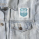 Custom Team Groom buttons for wedding / bachelor / bachelorette / bridal party. Turquoise and white colour. Personalizable names for groom, groomsmen, best man, bride, bridesmaid, maid of honour, friends, family etc. Cute design for wedding shower before the wedding. Cool shield emblem with elegant script letters.