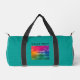 Custom Template Add Photo Image Text Teal Striped Duffle Bag