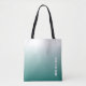 Custom Trendy Modern Elegant Cute Teal Blue Green Gradient Personalized Template Shopping Shoulder Tote Bag.