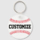 Highly detailed baseball stitches run horizontally across the round button, creating a very realistic looking baseball keychain and framing the custom text box in the center where you can type in any text you want - player name, team name, slogan, jersey number, whatever! Click the "Customize" button to adjust the size, color or font style of the text. At under four dollars, these make great affordable gifts for the whole baseball team!