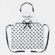 This is a cute girly and fun black and white polka dot hearts kitchen apron with a cute black bow design. You can customize the text with your name.
