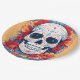 Add a touch of elegance and cultural charm to your dining experience with this decorative Paper Plates featuring a Dia de Muertos sugar skull design in a captivating colour palette! The sugar skull, a symbol of remembrance and celebration, is intricately depicted in rich hues of red, orange, and various shades of blue. This artistic design pays homage to the tradition of Dia de Muertos with its mesmerizing blend of colours.