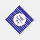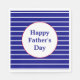 Navy blue and white stripes form the background. In the centre is a white circle with a red border. Inside the circle you can personalize these paper napkins with your message (shown: "Happy Father's Day) in navy blue text. Perfect for a father's day cookout.