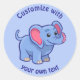 Custom Text Cartoon Elephant Blue Classic Round Sticker