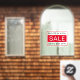 Sale sign window cling featuring customizable text "end of season sale. Up to 50 percent off" with a red border around it. Put in the window of your business to announce current sales.