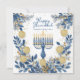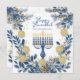Introducing the “Festive Foliage Hanukkah Card”! This elegant square greeting card is perfect for celebrating Hanukkah with a personal touch. The card features a beautifully illustrated menorah with all candles lit, surrounded by intricate watercolor illustrations of blue and white foliage and golden coins, symbolizing the festive spirit of Hanukkah.