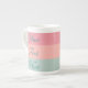 Custom Text Handwritten Script Pink Peach Teal Bone China Mug