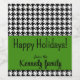 Custom Text, Happy Holidays Green Houndstooth (6) Wine Label