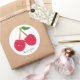 Custom Text Kawaii Happy Red Cherries Cute Fruit Classic Round Sticker