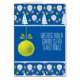 PLEASE CUSTOMIZE BOTTOM TEXT INSIDE! a Christmas greeting card that captures the festive spirit of padel! The front of the card features a playful pattern set against a vibrant blue background, adorned with padel rackets decorated like Christmas trees, shiny ornaments, and icy snowflakes. The rackets, with their subtle stripes and ornamented trees, give the impression that Santa has swapped his sleigh for a quick doubles game.