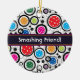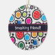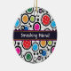Ceramic Ornament with Colourful pickleballs and black circles on white background. Perfect as a gift for a fashionable pickleball player. Customizable text.