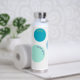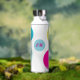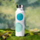 Personalized water bottle with a simple, minimalistic design. The central circle show the initials of the owner, while each bigger circle has a custom message. Ready to customize and perfect as a present!