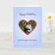 This birthday card can be used for cats, dogs, or any beloved pet, just upload your own photo and change the text as required. Both greetings on the front can be edited: "Happy Birthday" and "From the master of the house!" The light blue background has a pawprint hearts design to frame your photo, and there are more pawprints inside. The message inside can also be customized to suit: "Wishing you a purrfect birthday!"