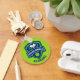 Customizable text. Bright green, navy blue and dark green pickleball with two white crossed pickleball paddles and lime green pickle ball. Back: navy blue background with custom text: Pickleball - serve, dink, score
