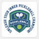 Customizable text. Bright green, navy blue and dark green pickleball with two white crossed pickleball paddles and lime green pickle ball.