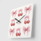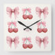 Custom Text Pink Bows and Cherries Girly Coquette Square Wall Clock