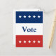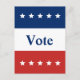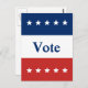 This post card has white stars across a blue field.You can edit the text. It currently says 'vote' in dark blue letters. Customizable text on this red, white and blue vote post card supports your get out the vote and/or voter registration efforts.