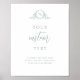 Add a touch of elegance to your wedding decor with this beautiful custom text sign with attractive sage green modern calligraphy elements and a delicate hand-drawn botanical monogram offering a serene, chic, timeless appeal. Whether it’s a welcome sign, cards and gifts, in loving memory, or any other signage display you require, this sign is fully customizable to fit your needs. Choose your own wording, names, or special message to make your big day even more personal. Add your text using the template text boxes. You may edit the design and use the design tool to make changes to its font style, size, colour, and positioning. 10" x 8" is only our default size, the sign is available in many sizes. Easy to frame or glue/staple into inexpensive MDF. Part of our "Pale Green Watercolor Monogram Wedding" collection with many coordinating items available.