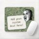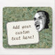 What's on your mind? Add your statement on this custom mouse pad! Digitally altered photo of young man shouting your text on a white rectangular label. Background is photo of green rock texture.