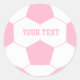 Custom Text Soccer ball Classic Round Sticker Pink