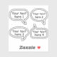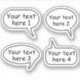 Stickers featuring custom text speech bubbles, set of four. You can change the background colour, border colour, border thickness, font and font colour with the design tool as well as resize and move around the text.