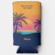 Custom Text Tropical Island Sunset Seltzer Can Cooler