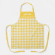 A yellow and white buffalo plaid kitchen apron featuring the text, “Chow Time!” Great for entertaining and barbecues. Text is customizable if you would like to include alternative text.