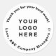 Easily personalize these simple, eyecatching professional Thank You Custom Corporate Employee Appreciation Day Gifts Classic Round Stickers adding your business logo and your custom circle text. Add your own slogan or website address to promote your company, upload your logo, image, graphic, clipart. Change text font choosing between a huge collection of serif, sans serif, decorative, handwritten and script fonts. Designed with text that fits the shape of the round sticker label. Perfect for your corporate party, baby shower, wedding favours, for business party giveaway labels, for express your gratitude to your employee, customers or guests, or giving a modern and professional look at sales staff, office staff or associates.