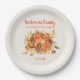 Orange pumpkins and fall leaves custom Thanksgiving dinner paper plates personalized with your own text. Add your family name and the date or anything else you would like.