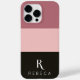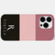 Beautiful elegant minimal custom phone case design featuring a colour block of three (rose gold/blush pink, dusky rose/turkish rose, black) in pastel rose gold pale hues and personalized name and monogram in sophisticated typographic fonts.