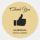 Elegant custom thumbs up image and Handmade Thank You text on golden beige Stickers. Image can be customized with your logo image. Text can be personalized.