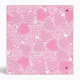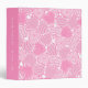 A pink decorative hearts pattern 3 ring binder with customizable text on the binder’s spine. Perfect for home or school. Add your subject title to this binder to keep your notes secure in one place.
