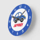 Custom toy car wall clock for kids bedroom or baby nursery. Personalized wallclock with custom name of child. Cute baby shower or 1st Birthday gift idea for little boys room. Red auto vehicle decoration with personalizable name or monogram. Home decor for childrens room wall. Make your own unique present for grandson, nephew or son.