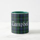 Great looking Scottish clan mug done in the traditional Campbell pattern. Old world style text in white reads Campbell and is customizable to read what you want.