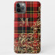 Contemporary faux shiny chic gold baroque floral swirl pattern on classic red, black, yellow, and white Scottish plaid motif. With room to customize or personalize with a monogram or initial of your choice. Beautiful, modern, and cool cover for the trend-savvy and art-loving hip trendsetter, artsy motif lover who wants to protect their phone from dust and dirt, wear and tear. This design is available in Apple iPhone 6, 7, 8, 10 or X, XR, XS, 11, 12, 13 Mini, 14, 15 Plus, and Pro Max cellphone cases. Show off your style, look fashionable trendy, and feel stylish with a unique design on a mobile device accessory of your choice.