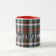 Great looking Scottish clan mug done in the traditional Stewart red, green and white dress plaid pattern. Old world style text in white reads Stewart and is customizable to read what you want.