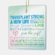 Transplant strong and organ donor awareness ornament in a unique, contemporary blue and green design with light watercolor background. Personalize the back of the ornament with your transplant type and date! Makes a lovely and thoughtful gift for the transplant recipient in your life. Created for the square ornament shape. Stay strong, warriors!