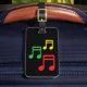 Custom travel luggage tag with music notes design. Personalized baggage label for musician, artist or singer. Customizable template with custom name, quote or slogan and custom background colour. Black or custom colours. Unique gift idea for musician, music teacher or singer and people who play piano, guitar, flute, trumpet, cello, saxophone, other instruments etc. Suitable for men women and kids. (boys and girls).