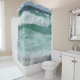 Custom Upload Add Your Photo or Logo Text Elegant Modern Cute Bath & Beauty / Bathroom Accessories / Shower Curtains / Monogram Name Template Waves Blue Sky And Sea Shower Curtain.