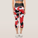 Stylish, trendy, bold cow print monogram throw pillow capri leggings in black and red. There is a plain black waistband with an inspirational text - RUN YOUR RACE - based on the Christian Bible verse from Hebrews 12:1. This text is CUSTOMIZABLE so you can create your own or add your name. When it's time to make a statement - whether in the gym or lounging around the house, surely you can't go wrong with some bold cowprint patterns... Choose from a wide selection of leggings and capris by Berean Designs.