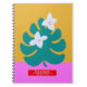 Custom trip travel name modern yellow pink floral Spiral Notebook. Personalized bright colours trendy yellow pink notebook for travel planning, trip plans. Beautiful vibrant artistic tropical exotic journal with monstera leave. Gift idea for travel lovers, women, mothers, wifes, adults, girls, young professionnal, for birthdays, christmas, summer holidays. original artwork form mwanga design.