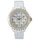 Custom tropical pineapple fruit pattern women's watch. Luxury gift idea for women and girls. Personalizable with her name. Elegant script typography template for name, monogram or quote. Make your own unique one of kind luxurious time piece. Stylish design with fruity background image and dial numbers. Classy present for Birthday, Christmas Holidays, Sweet 16, graduation, wedding etc. Buy for wife, girlfriend, sister, mother, mom, friend, cousin, aunt, grandma, daughter etc. Chic ladies accessories with exotic rainbow icon print.