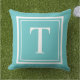 Custom Turquoise Square Monogram Initial Letter Outdoor Pillow