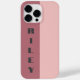 Beautiful elegant minimal custom phone case design featuring a colour block of two (rose gold/blush pink, dusky rose/turkish rose) in pastel rose gold pale hues and personalized name in sophisticated typographic fonts. Cute stripes aesthetics with grey big bold text..