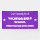 Here's a bright sign with attention-getting stars to let people know about your VBS offerings, services or event! Personalized with your own words and church name! Even change the background colour!