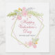 Beautiful pink floral Happy Valentine's Day party wine label for an elegant brunch or a ladies luncheon with friends. Lovely hexagon frame with spring flowers of pink hibiscus and yellow daffodil with a green botanical spray.