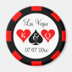 Custom value poker chip magnet wedding party favour. Cool design with monogrammed initials of bride and groom plus date of marriage. Personalize with your location, date or value etc. Black and red round marker coin with hearts and spade symbols. Las Vegas theme marriage gifts.
